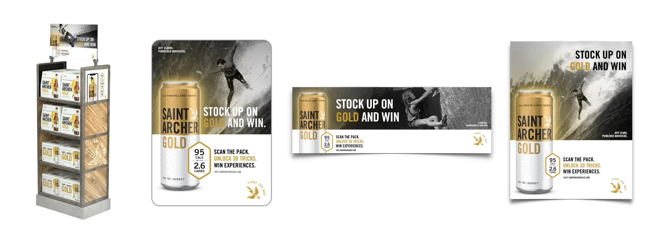 Saint Archer Gold, a premium light beer founded by skateboarders and surfers, was preparing for a national retail launch. The timing aligned with the 2020 Olympics, where skating, surfing, and climbing would be added for the first time. Our challenge: build a bold, culturally resonant campaign to generate excitement in retail and bar environments—while honoring the maverick spirit that defined the brand’s roots.